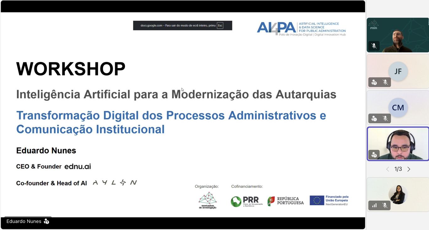 No passado dia 21 de março, o Polo de Inovação Digital AI4PA promoveu o workshop “Inteligência Artificial para a Modernização das Autarquias”, uma iniciativa dinamizada em parceria com o MORE CoLAB – Laboratório Colaborativo Montanhas de Investigação.