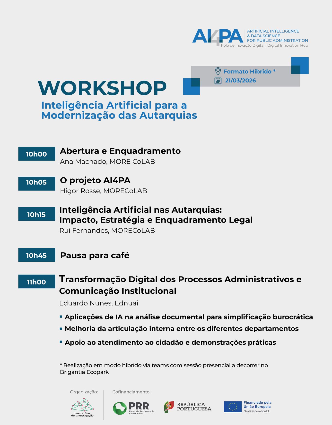 Organização: MORE CoLAB, AI4PA EDIH