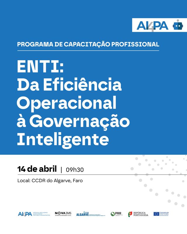 Na parte da manhã, apresentações sobre IA Generativa, serviços públicos AI-Driven e soluções de IA de alto impacto culminam num debate sobre governação digital, precedido por um coffee break propício a networking.